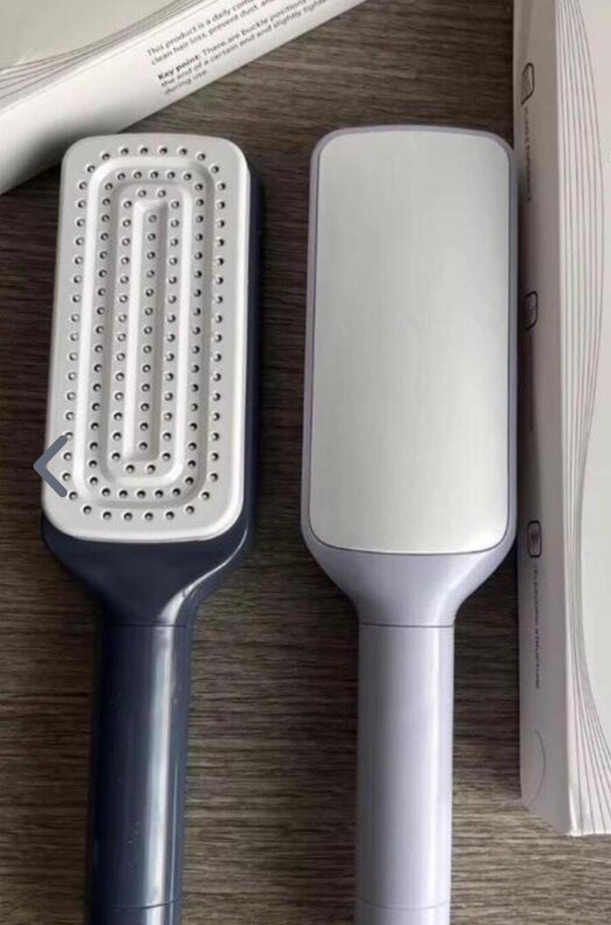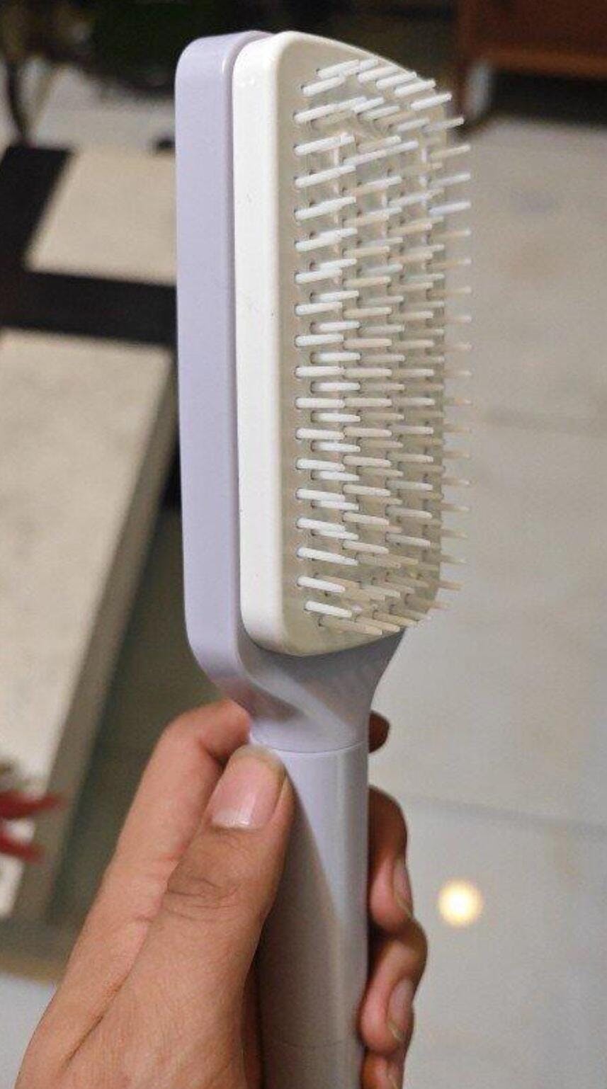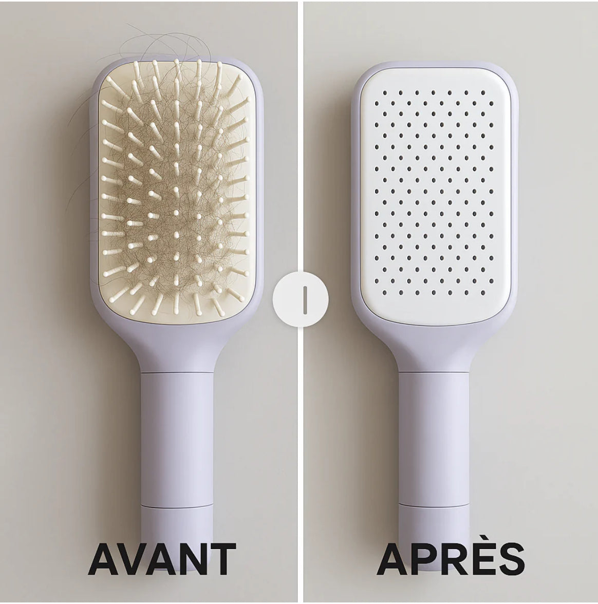 Découvrez notre brosse magique auto-nettoyante qui simplifie votre routine de coiffure. Grâce à ses picots rétractables, vous éliminez les cheveux coincés en un tour de main.